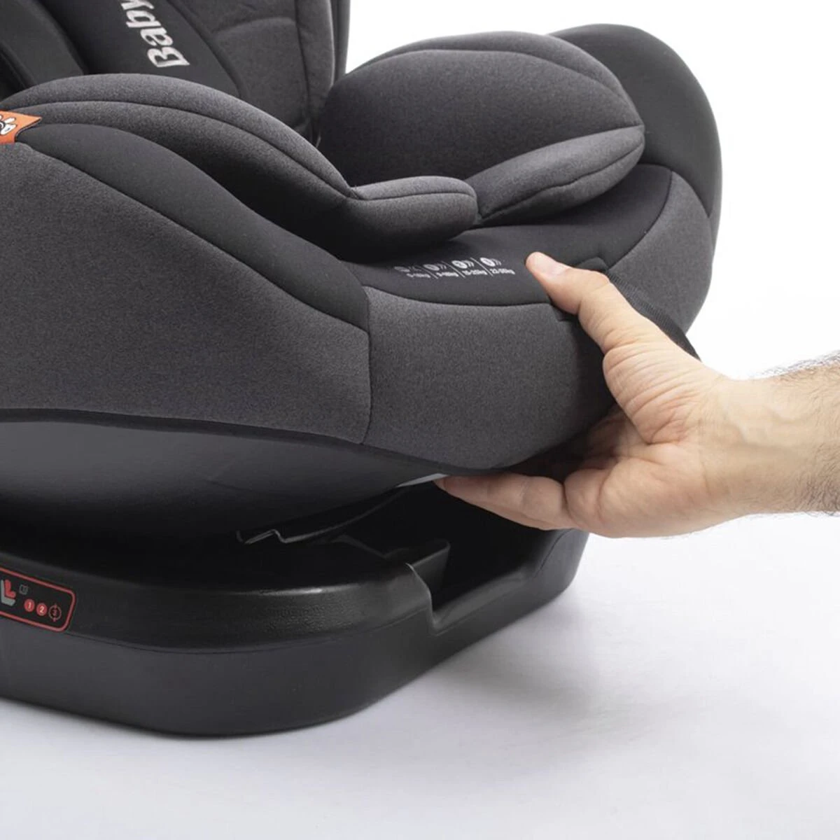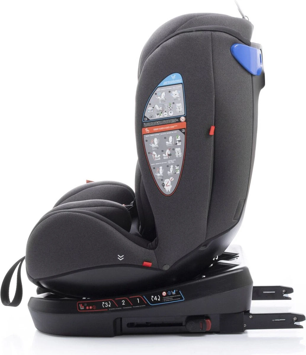 Groep 0 (0-13 kg): De autostoel wordt achterstevoren op het isofix systeem bevestigd door middel van de 360 graden functie. De stoel wordt daarna in de auto geplaatst en vast gemaakt met de top tether (kan ook vastgezet worden met de autogordel). Je kunt je kindje vast maken met de vijfpunts autostoel gordel.