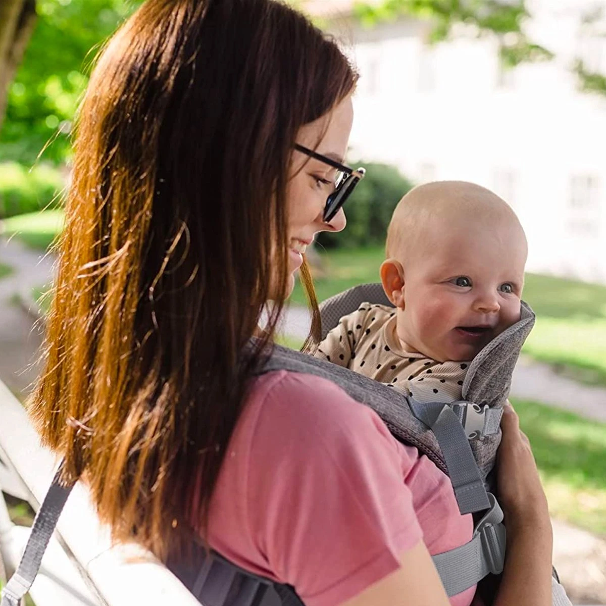 De draagzak kan op de rug of op de buik gedragen worden. Dankzij de brede en zachte heupgordel en de gewatteerde schouderbanden is deze draagzak ook prettig om te dragen. De riemen zijn makkelijk verstelbaar zodat een perfecte pasvorm voor je kindje kan aangenomen worden.