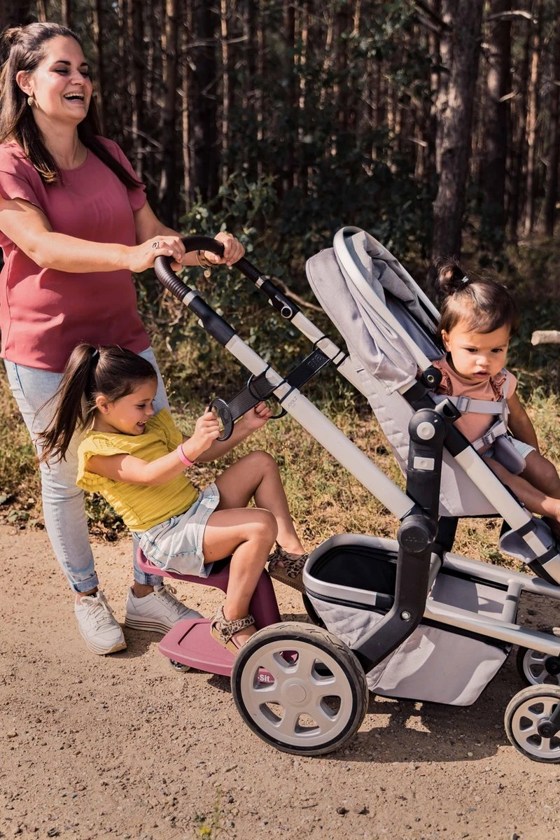 De Loopie heeft alleen een stang nodig en dan kan hij al gebruikt worden. Super fijn in combinatie met de Kid-Sit, het universeel meerijdplankje wat ook op bijna elke kinderwagen past. Het plankje rust op de achter-as en wordt met simpele strips vastgemaakt. Wanneer je geen rechte achteras hebt, dan is onze adapter de uitkomst. Check voor de zekerheid onze kinderwagenchecker op onze website evekids.nl, nog even en kies dan je favoriete kleur om te bestellen!