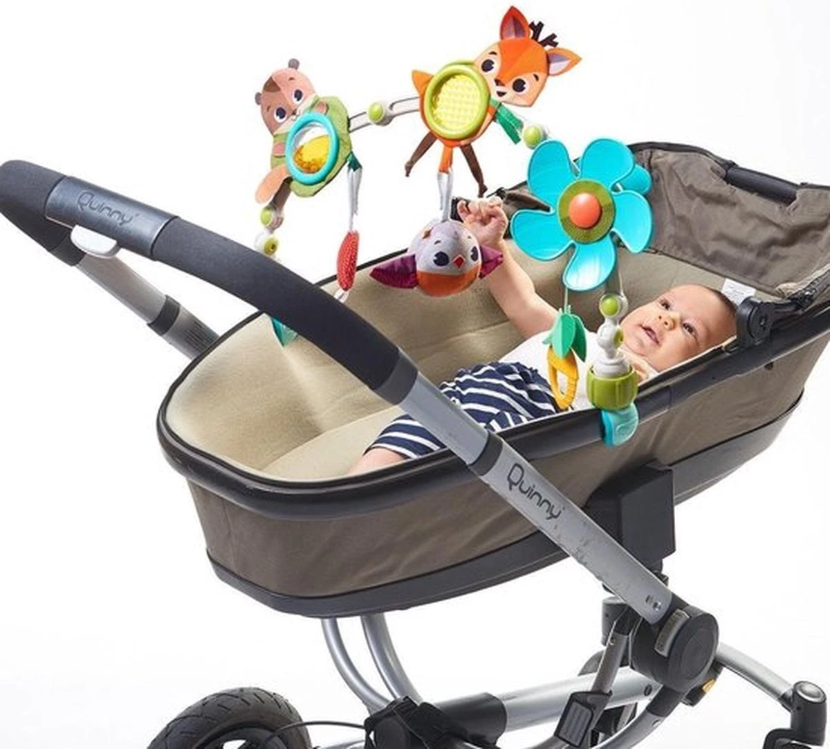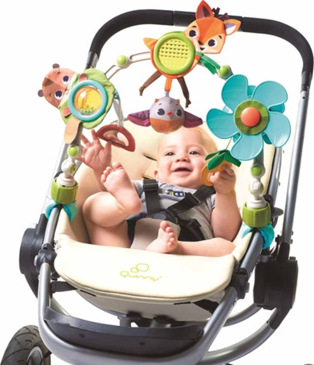 Tiny Love’s Into the Forest Musical Nature Stroll zorgt voor plezier en amusement onderweg. De wandelwagenboog heeft verschillende speeltjes die zowel entertainen als de ontwikkeling van je baby stimuleren. Dit is ook de enige wandelwagenboog met een elektronisch speelgoed en vier speelse deuntjes die door de baby worden geactiveerd om het essentiële leren van oorzaak en gevolg aan te moedigen. Perfect voor een fijne wandeling samen met je kleintje. De wandelwagenboog maakt deel uit van Tiny Love’s Into the Forest-collectie en bevat Into the Forest Tiny Pioneers. Dit muzikale speelgoed inspireert je baby met verschillende deuntjes. Zodra de speeltijd is begonnen, kunnen de flexibele bogen van Music Nature Stroll gemakkelijk naar je baby worden gericht. De verstelbare boog is ook ontworpen om zich aan te passen aan verschillende kinderwagenstijlen en kan eenvoudig worden bevestigd met de universele clip.